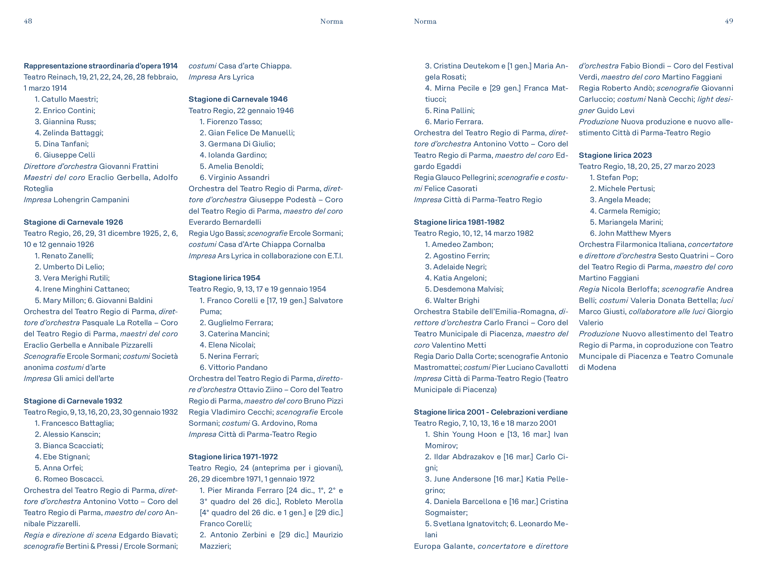 “Non è casuale la scelta di mettere ancora una volta in scena Norma, dichiara Alessio Vlad, direttore artistico del Teatro Regio di Parma. Certo, capolavoro assoluto che non si vorrebbe mai smettere di ascoltare e di scoprire, ma che necessita dell’affermazione di alcuni principi esecutivi. Principi che si identificano con la necessità di caratterizzare la personalità drammaturgica dei personaggi attraverso la definizione della loro vocalità. È quello che accade normalmente nella maggior parte delle opere della prima parte dell’Ottocento e non solo, ma che qui assume un significato particolare e svela delle prospettive. Il perno sta nel rapporto tra Norma e Adalgisa. Donna matura una, giovane l’altra. Confronto che non può non riflettersi in una raffigurazione anche vocale. Il colore di Norma dovrà infatti necessariamente essere più scuro di quello di Adalgisa, dando risalto cosi alle differenze tra i due personaggi. Differenze che sono alla radice stessa del dramma. Partendo da questo presupposto, viene naturale associare le caratteristiche vocali di Norma a quelle del soprano falcon, e quelle di Adalgisa a un soprano lirico-leggero. È un indirizzo che apre, poi, a prospettive musicologiche che inquadrano la figura di Bellini all’interno di un percorso compositivo. Percorso, in cui una corda vocale ibrida e non del tutto definibile, nata nell’ambiente parigino, si è sviluppata nelle opere di Meyerbeer e di Wagner e, passando per una parte della produzione verdiana, arriva addirittura al Novecento operistico. Le vocalità di Vasilisa Berzhanskaya e di Maria Laura Iacobellis corrispondono a queste caratteristiche cui, ai fini di un’omogeneità esecutiva, devono necessariamente uniformarsi quelle del tenore, nel nostro caso Dmitry Korchak e del basso, Carlo Lepore”.