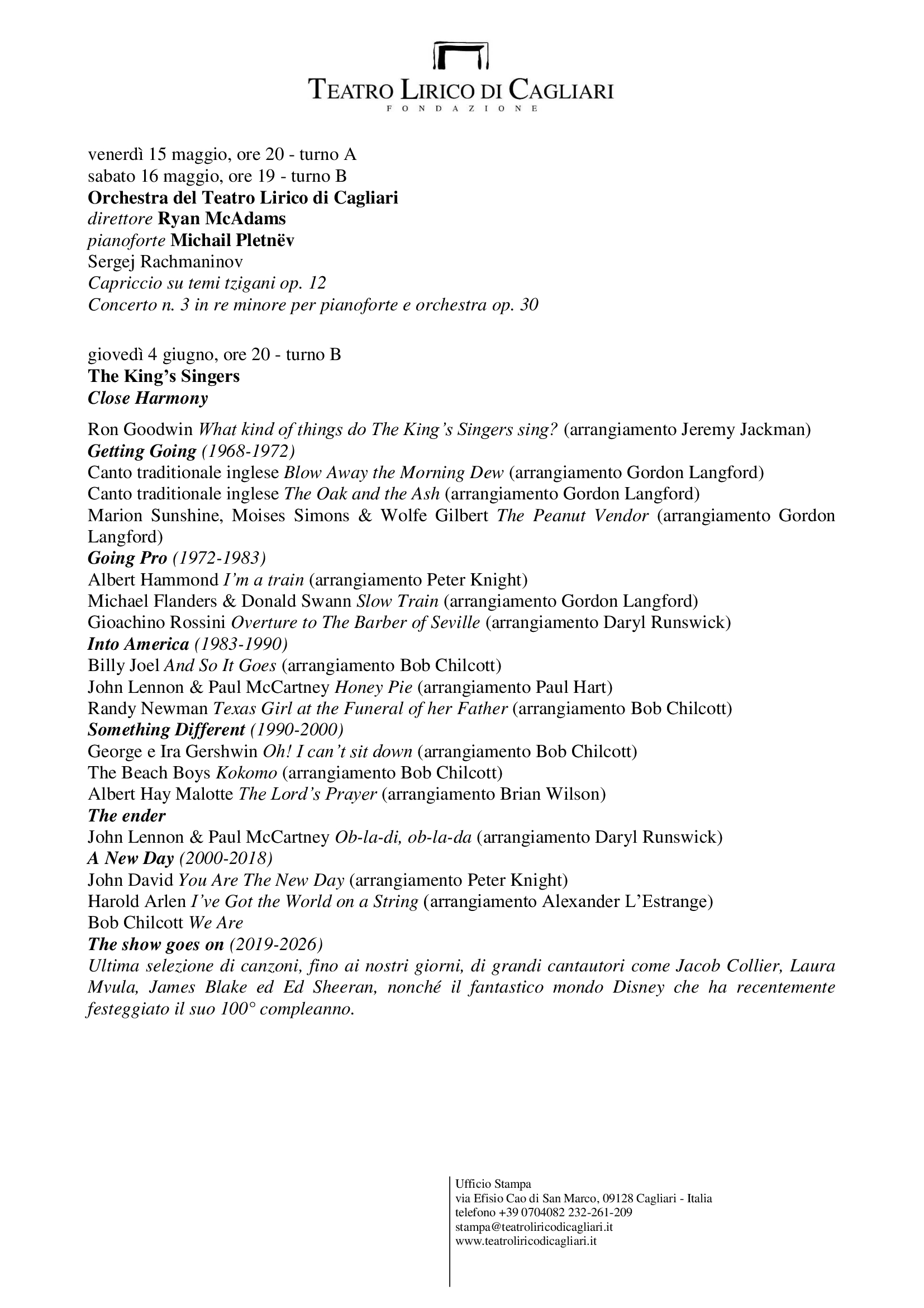 telefono +39 0704082209 – stampa@teatroliricodicagliari.it – www.teatroliricodicagliari.it
