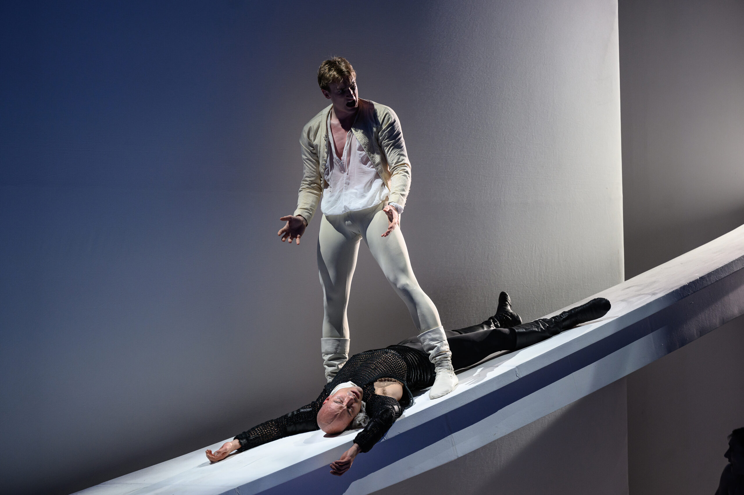 Tebaldo cerca la lite con Mercuzio e Benvolio. Romeo cerca di calmare gli animi, ma Tebaldo finisce per uccidere Mercuzio. Romeo, pacifico ma uomo d’onore, deve vendicarsi del suo amico. Sfida a duello il nemico dei Montecchi e gli sferra un colpo fatale.