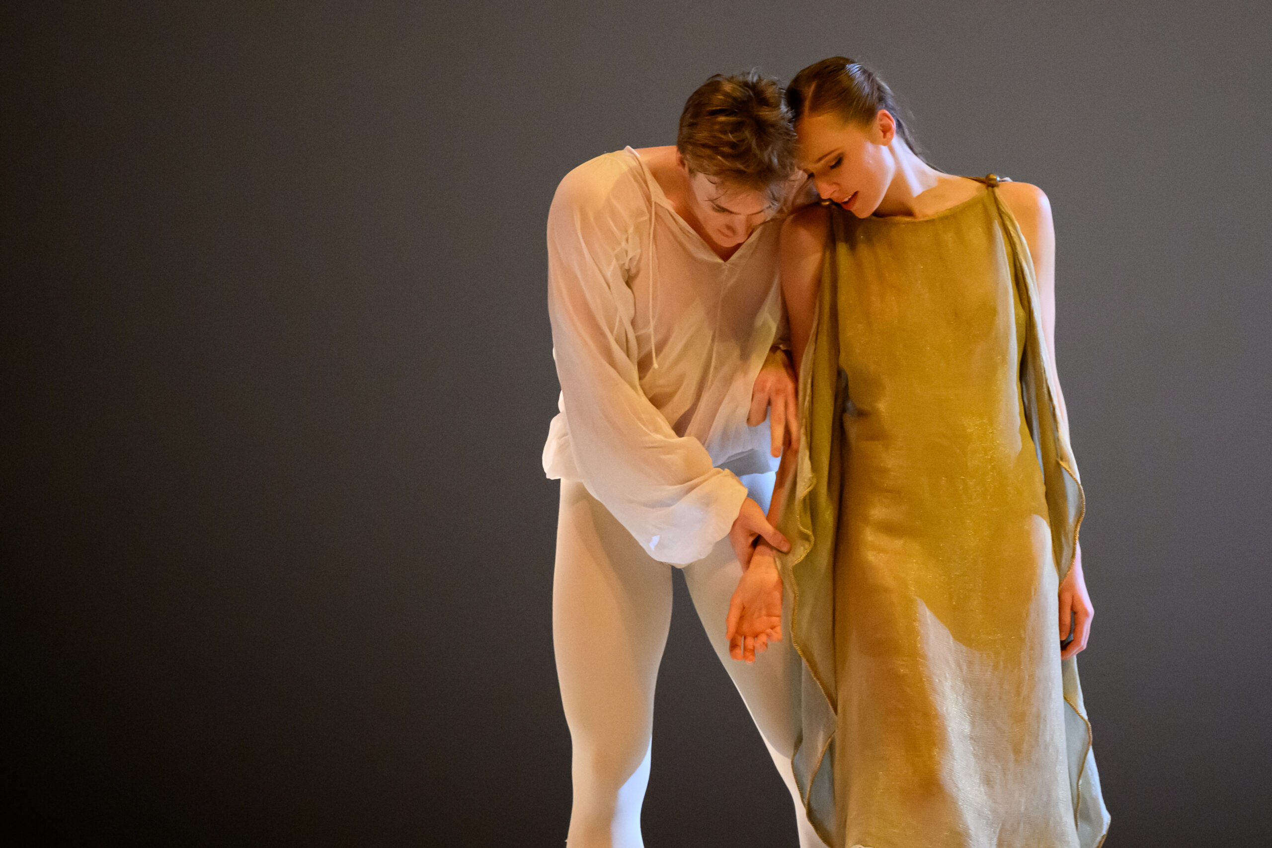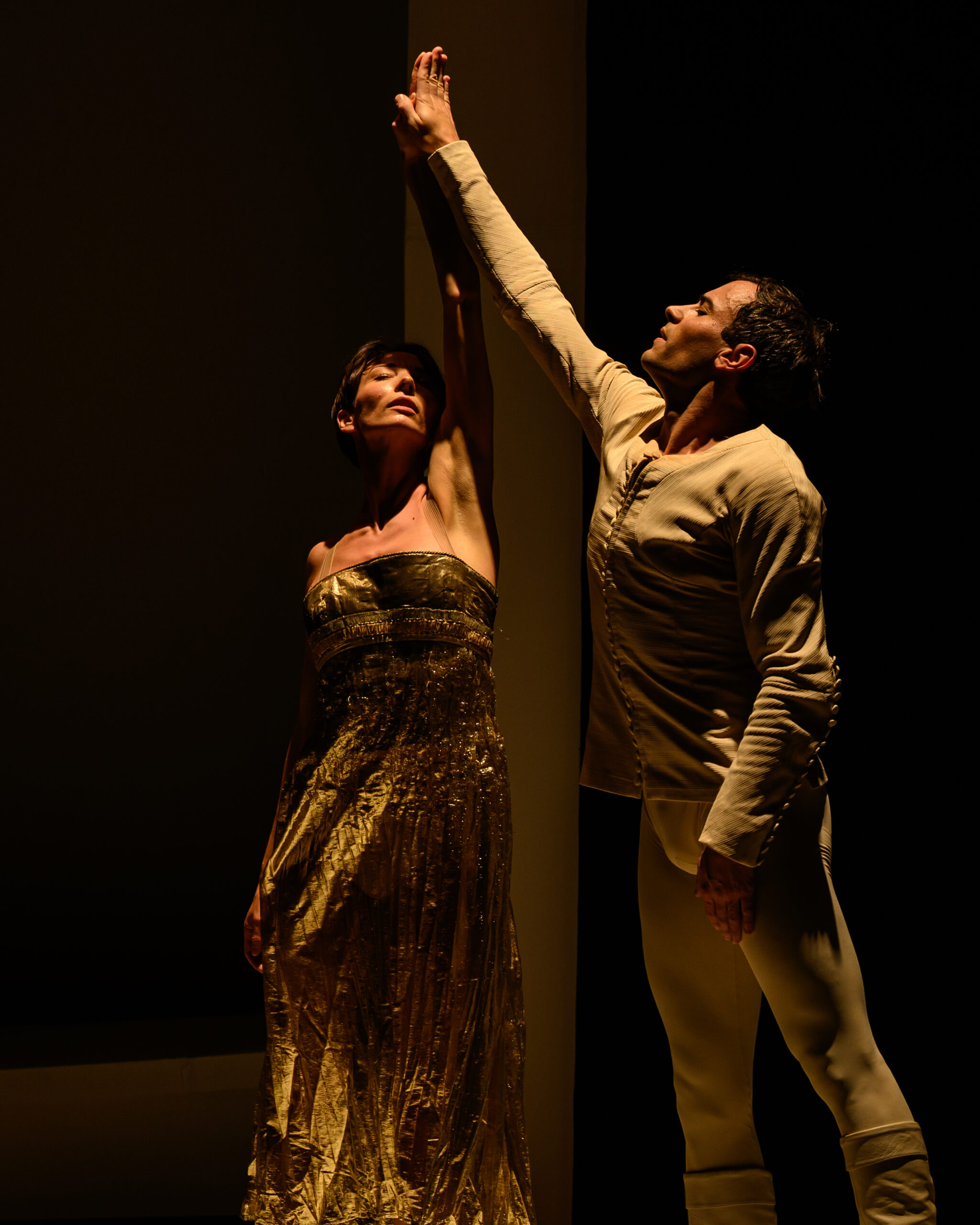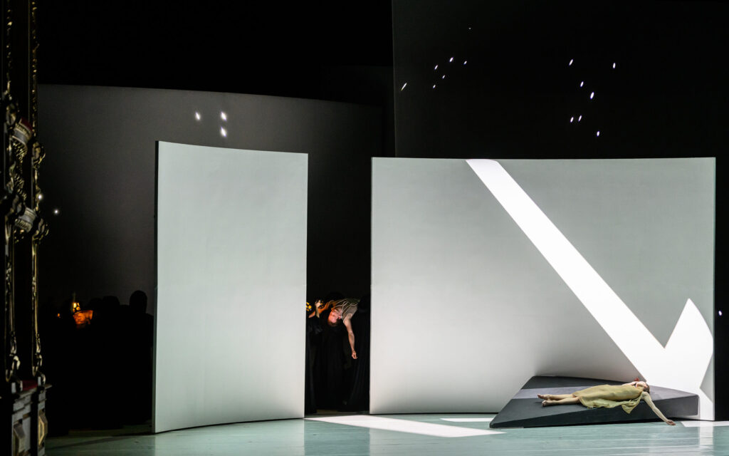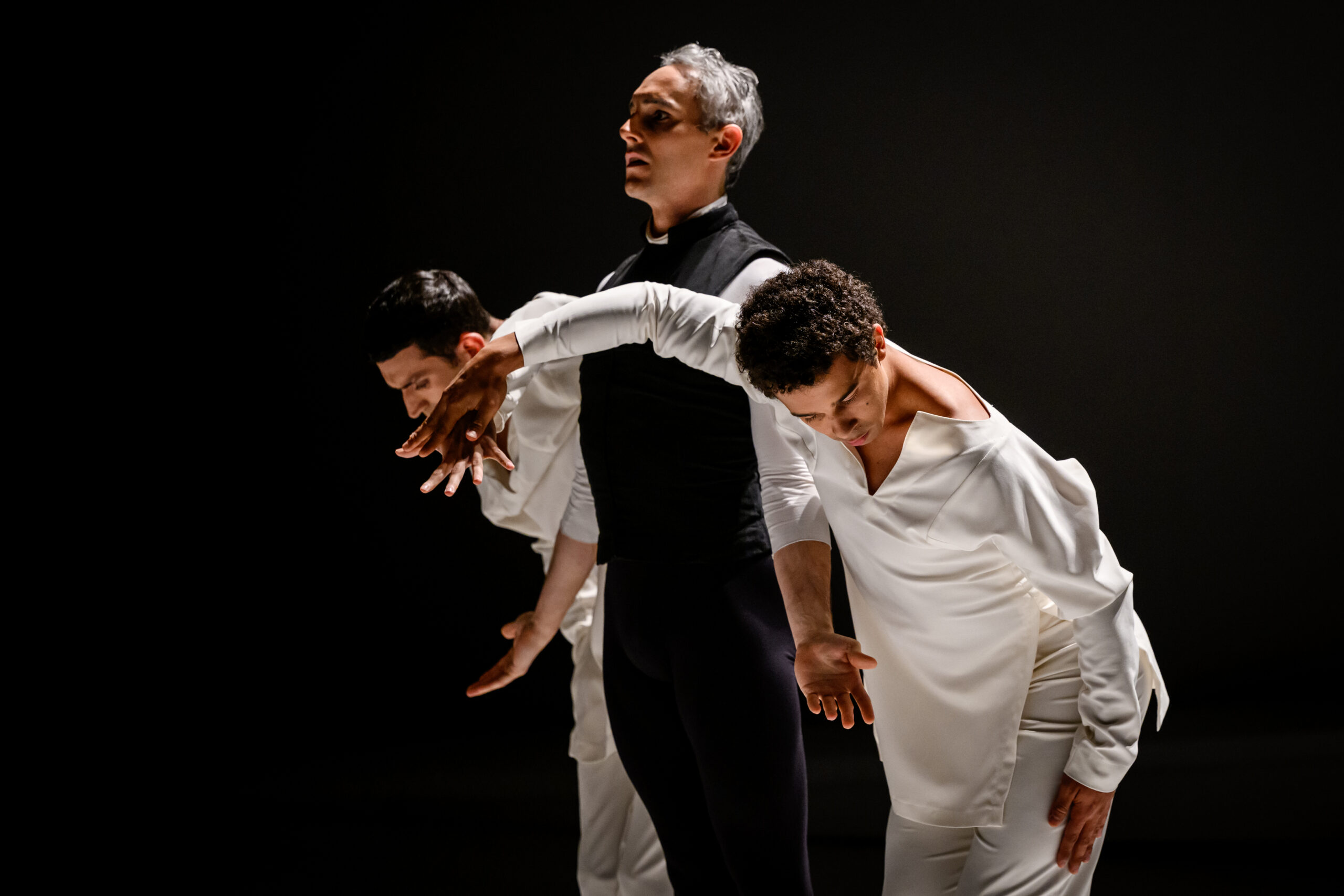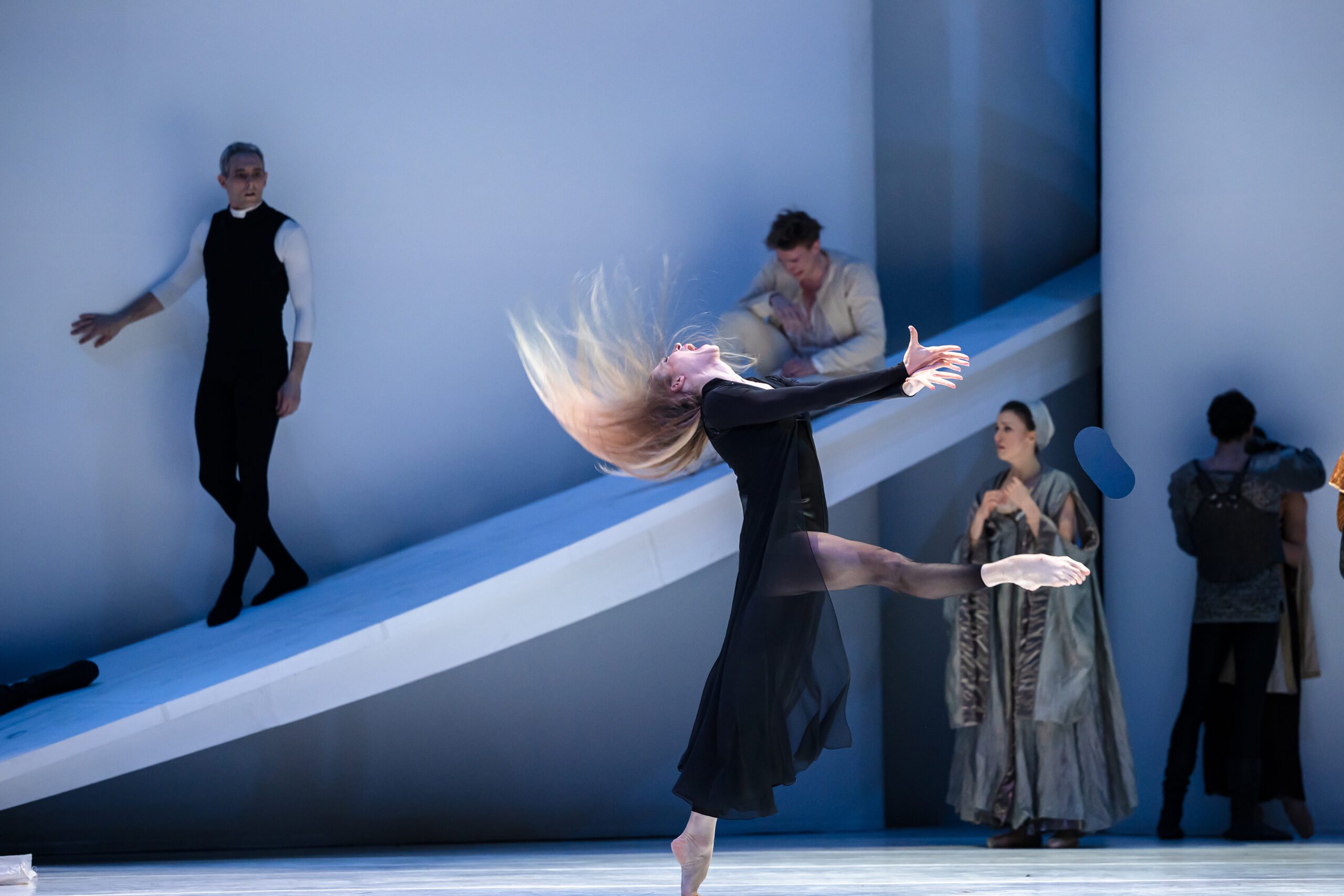 Trattandosi di Romeo e Giulietta, la sintassi è chiaramente cinematografica. Il balletto prende in prestito dalla settima arte numerosi strumenti: il flash-back, che ci permette di immer- gerci nell’introspezione di Frate Lorenzo, o il fermo immagine e il rallentatore. Si noterà allo stesso modo che lo spettacolo non è mai presentato in maniera frontale. I danzatori compiono le loro evoluzoni seguendo delle diagonali e non si rivolgono mai verso il pubblico… perché ricordano che un attore non guarda mai in camera. Infine, ciascun danzatore del corpo di ballo possiede il proprio (secondo) ruolo e può distaccarsi dagli altri attraverso un’azione singola. Per quanto riguarda i ruoli principali, sono interpretati da danzatrici, il che fa dire a Jean-Christophe Maillot che il suo Romeo e Giulietta è prima di tutto «un balletto di donne». Giulietta, Madonna Capuleti, Rosalina, la nutrice… queste donne sono vicine le une alle altre