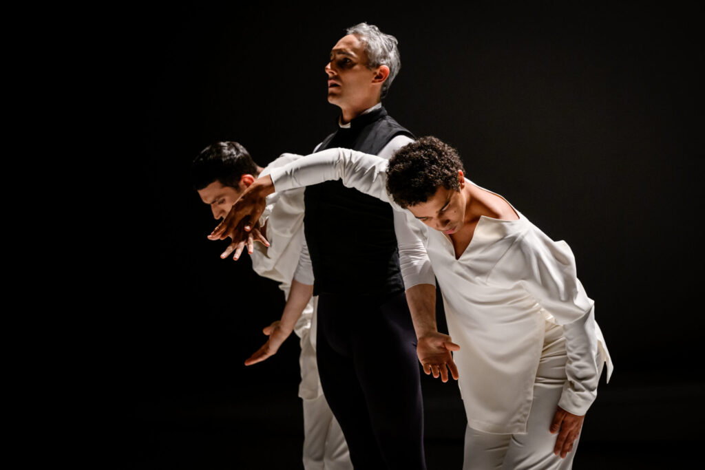 Roméo et Juliette di Jean-Christophe Maillot è il flash back di questo religioso sconvolto che, alla fine del dramma, si chiede come si è potuti arrivare a tanto. Questa diversa prospettiva illumina la sensibilità del coreografo, che interpreta la vicenda non come un conflitto sociale o una lotta tra clan regolata da un codice d’onore, ma come un dramma fortuito che porta alla morte due ragazzi più presi dai giochi dell’amore che da quelli dell’odio. Secondo questa chiave, Jean-Christophe Maillot ha ideato una coreografia che sconvolge i codici della danza classica in ciò che ha di più tradizionale, conservandone al contempo lo slancio, l’energia e la grazia senza tempo, un vocabolario classico con una sintassi contemporanea sempre al crocevia di molteplici discipline artistiche.