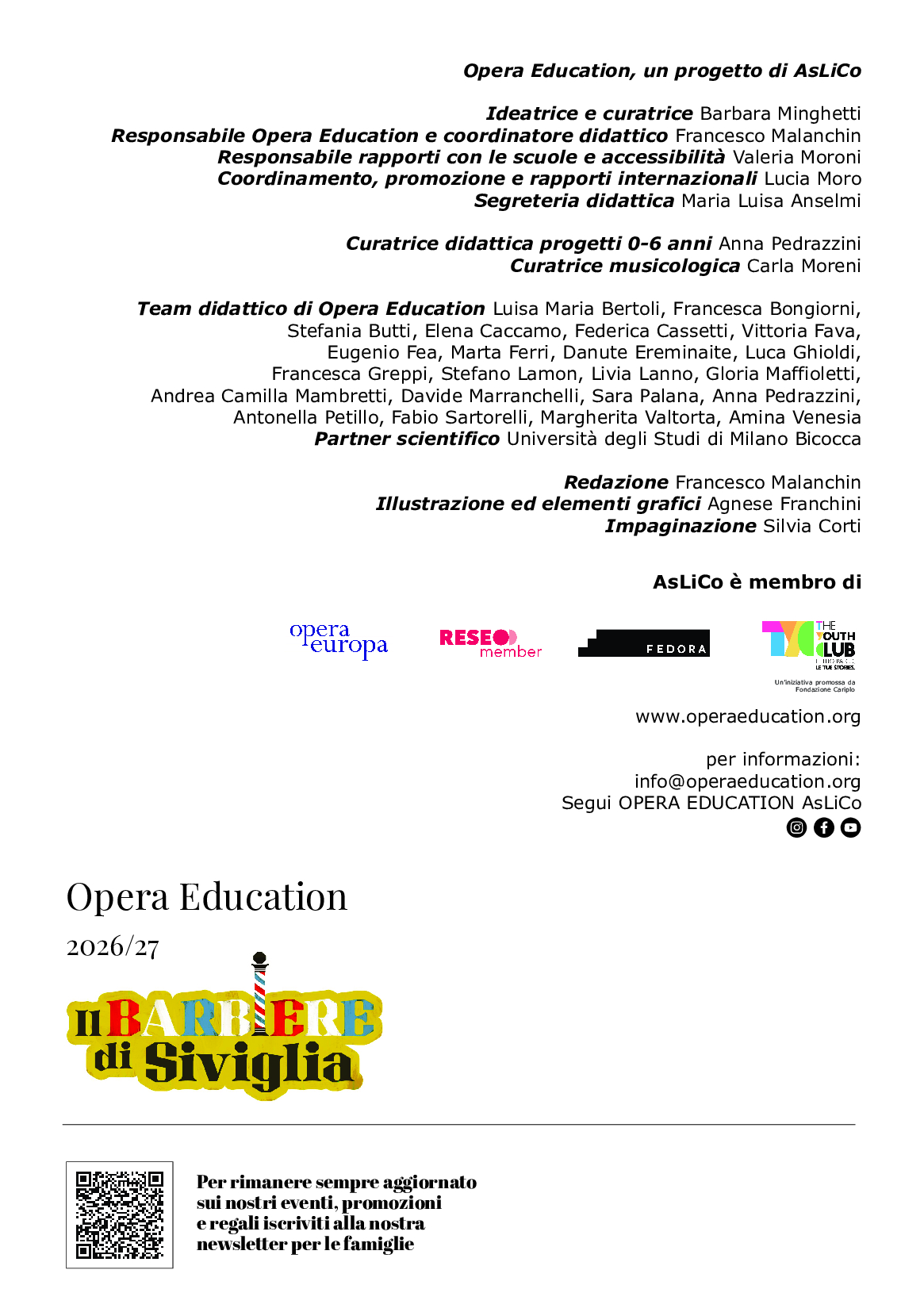 Laboratori didattici dedicati ai docenti per trasmettere ai giovani spettatori la passione per la musica e prepararli a vivere l’emozione del debutto in Teatro, accreditati dal Ministero dell’Istruzione quali progetti di formazione continua per gli insegnanti sono in programma. L’ultimo in calendario è Rigoletto I misteri del teatro lunedì 23 marzo 2026, ore 17.00.