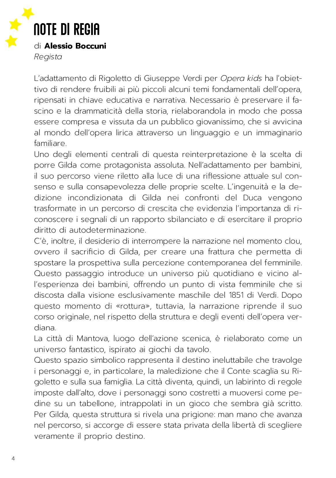 Sono ispirati a Rigoletto di Giuseppe Verdi gli spettacoli di AsLiCo-Opera Education in programma al Teatro Regio di Parma per Regio Young e dedicati ai più piccoli: Gilda nel gioco del Duca dai 3 ai 6 anni, Rigoletto Il mistero del Teatro da 6 a 14 anni e Il giardino di Rigoletto da 3 mesi a 3 anni.