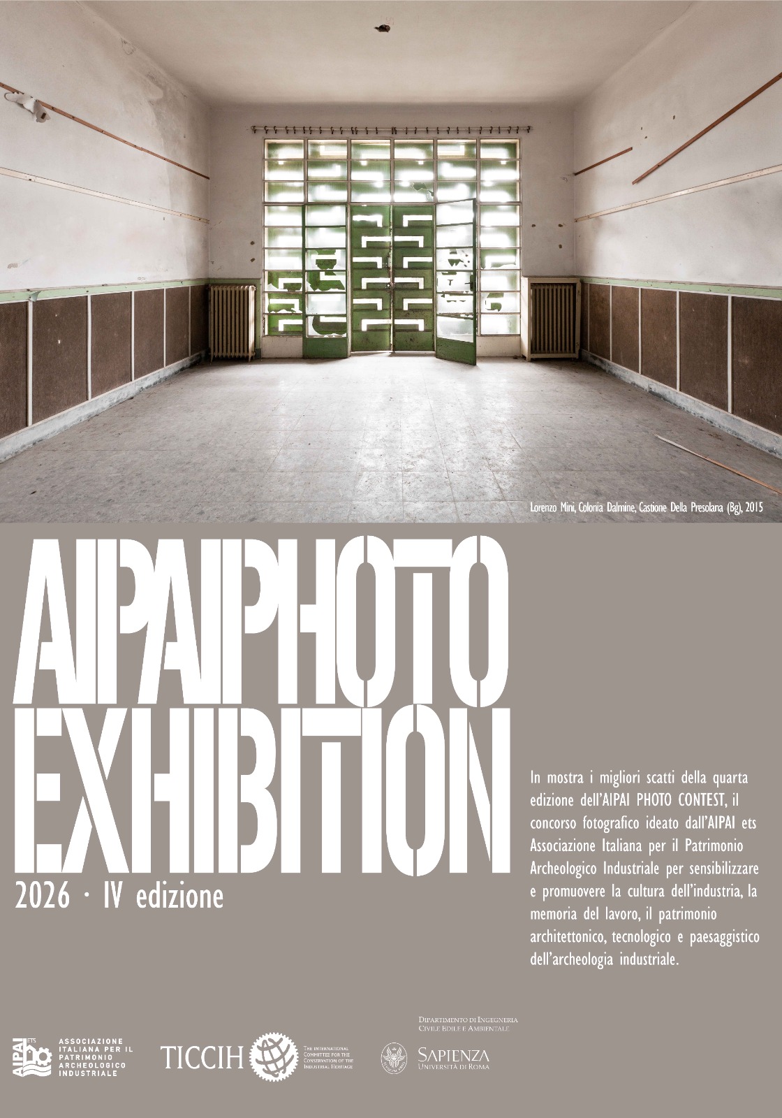 In esposizione gli scatti vincitori, menzionati e selezionati della quarta edizione dell’AIPAI Photo Contest, il concorso fotografico ideato dall’associazione per promuovere la conoscenza e la valorizzazione del patrimonio archeologico industriale italiano. Attraverso la fotografia, il contest invita autori e ricercatori visivi a confrontarsi con i luoghi della produzione, con la memoria del lavoro e con le trasformazioni che questi spazi continuano a generare nel paesaggio contemporaneo.