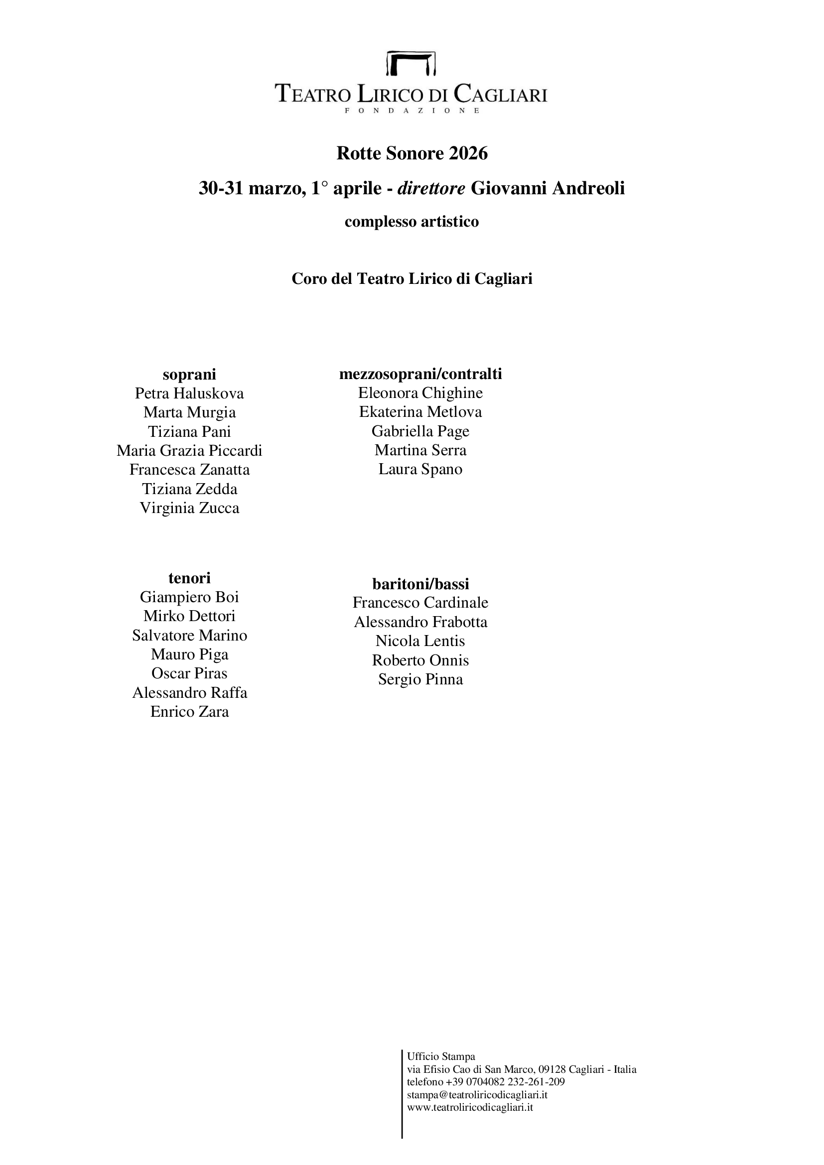 Teatro Lirico di Cagliari, via Efisio Cao di San Marco, 09128 Cagliari – Italia telefono +39 0704082209 – stampa@teatroliricodicagliari.it – www.teatroliricodicagliari.it