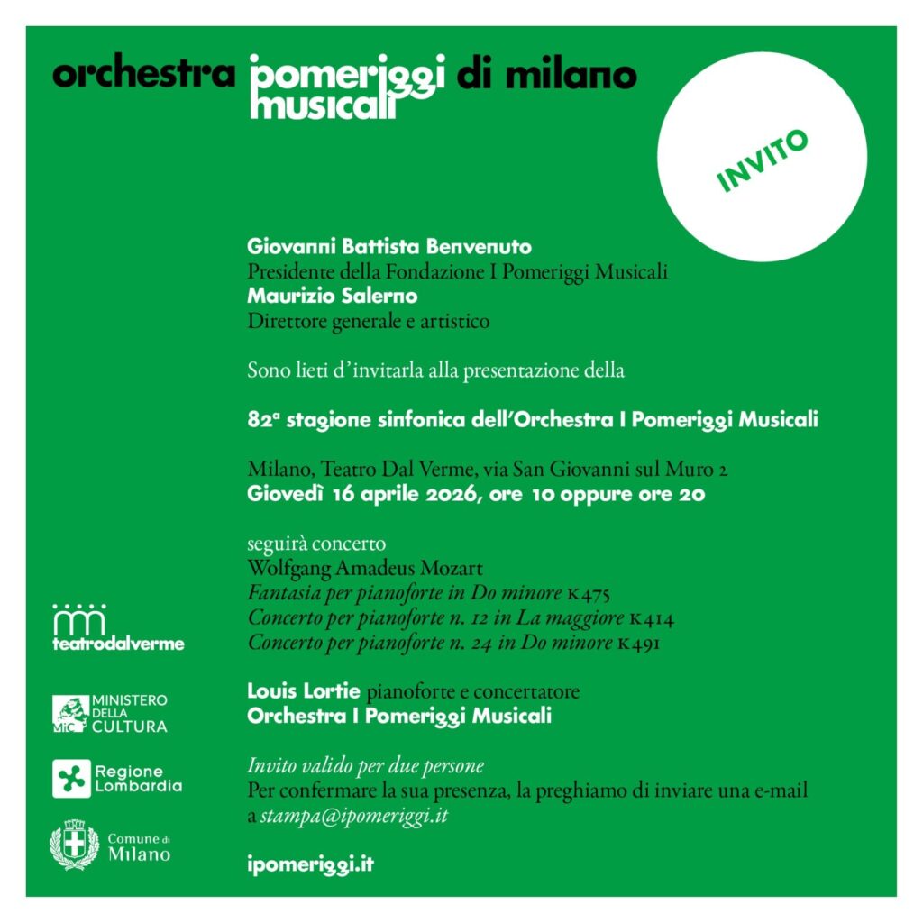 PRESENTAZIONE DELLA NUOVA STAGIONE 2026/2027 DEI POMERIGGI MUSICALI