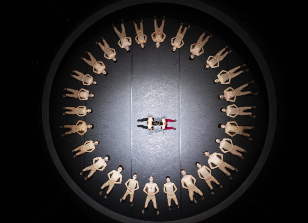 Sono i gesti scattanti e la figura del cerchio con cui si aprono e chiudono i suoi Carmina Burana a dare il senso, sulle prime note di “O Fortuna”, della personale rilettura del capolavoro di Orff. Qui la ciclicità della vita, la forza propulsiva dell’amore e la resilienza si traducono in una coreografia di corse e fughe che rendono il centro del palcoscenico – sovrastato da un enorme anello – il nucleo di attrazione e repulsione dei corpi. La forza collettiva degli unisoni, l’insistenza sulle geometrie, l’energia e la tensione portano il pubblico a bramare, insieme ai danzatori, l’irraggiungibile.