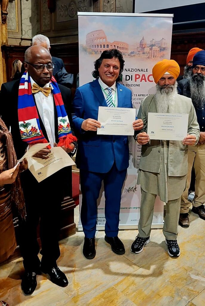ROMA. Nella prestigiosa cornice della Sala Consiliare della Provincia nel Palazzo Valentini a Roma si è svolta una suggestiva cerimonia internazionale nel corso della quale al Commendatore Santino Spinelli è stato insignito del Diploma Onorifico di “Segno di Pace”, quale ulteriore riconoscimento per l’alto valore umano, civile e culturale della sua testimonianza. Il riconoscimento è stato conferito dalla Cattedra della Pace di Assisi, ente capofila del Comitato promotore della Terza Edizione del Premio Nazionale “Segni di Pace 2026”. A consegnare il diploma il direttore Renato Ongania.