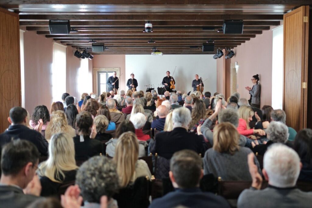 Applausi al termine di un concerto di Musei in Musica nel Teatrino di Palazzo Maffei, sede del prossimo appuntamento di domenica 26 aprile alle 11 @EnneviFoto